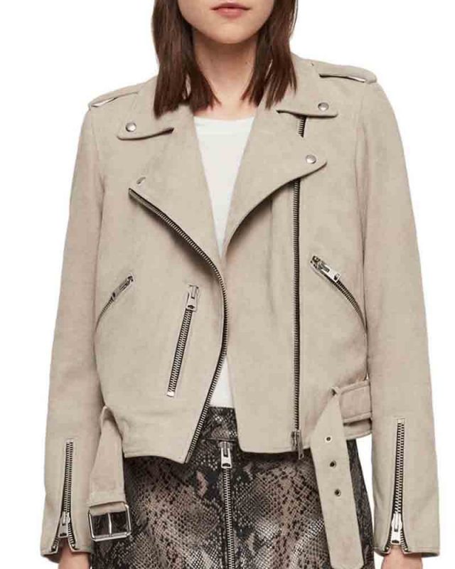 Spinning Out Kaya Scodelario Suede Leather Kat Baker Biker Jacket