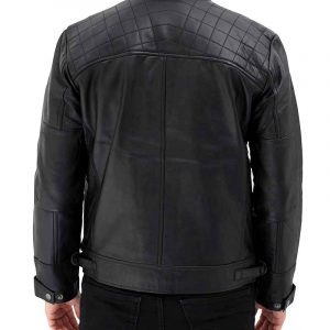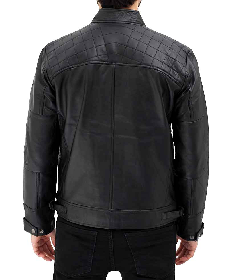 Black Mens Quilted Leather Cafe Racer Jacket
