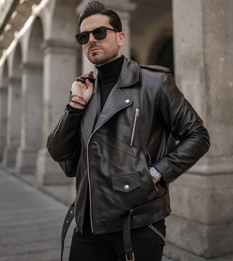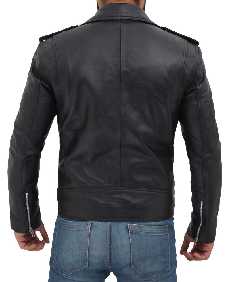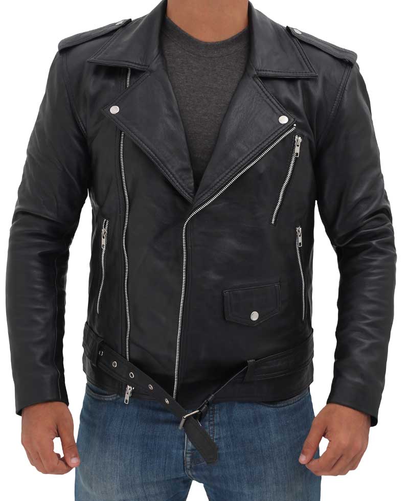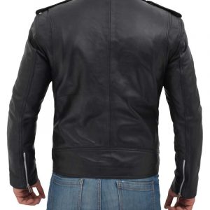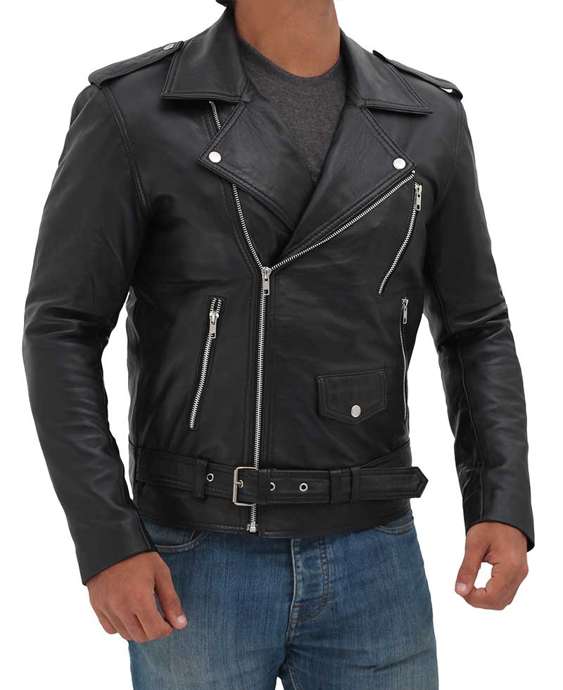 This is a stylish and unique asymmetrical men’s leather jacket. It is made of high quality real lambskin leather.