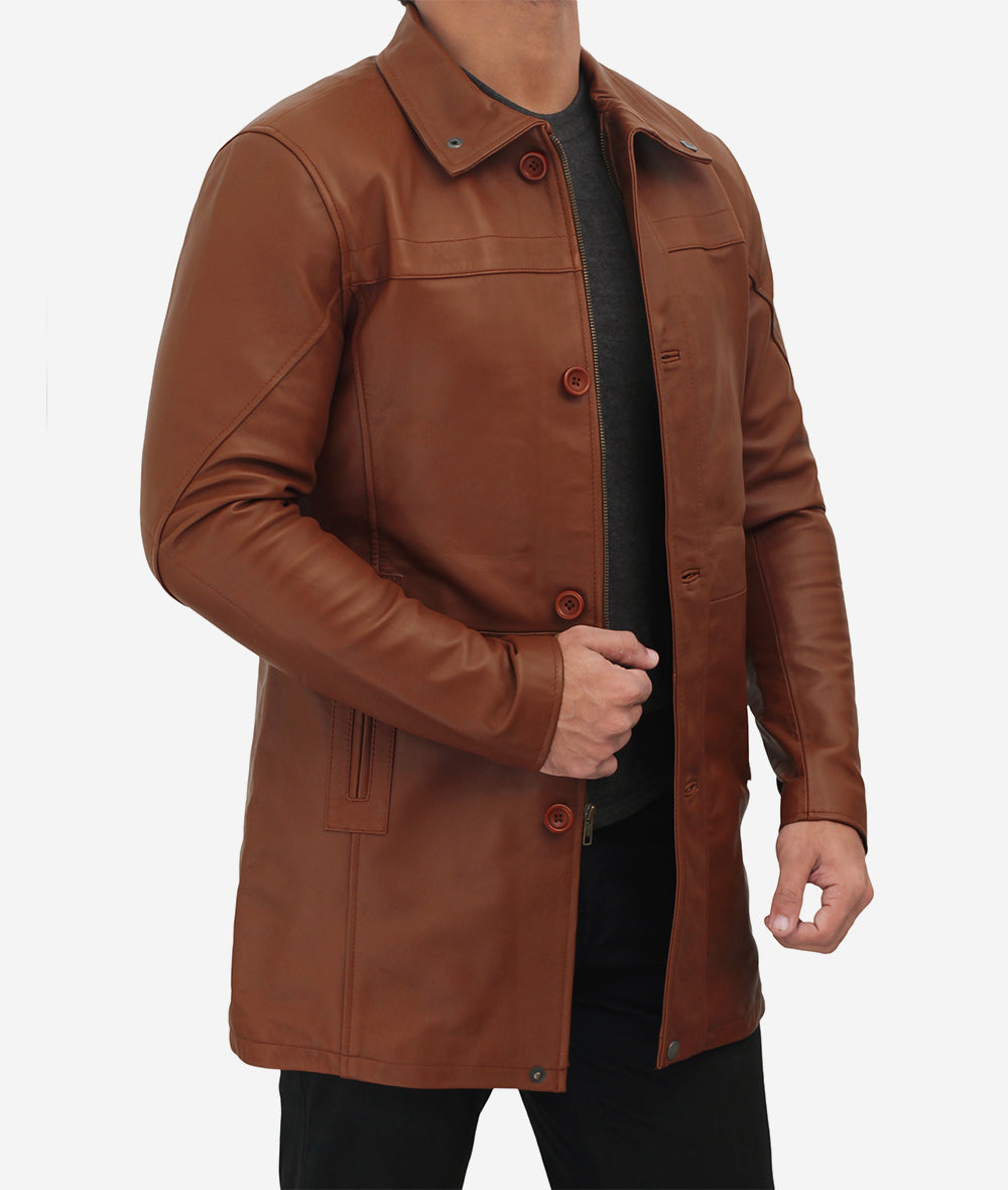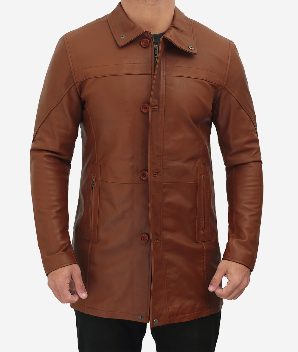 You will certainly enjoy comfort and style when you don this all-season friendly Mens Brown Leather Car Coat. Equiped with features that boost fashion and overall leather construction. Shirt collar and double closure to keep away the cold. A style staple for your outdoor commute!