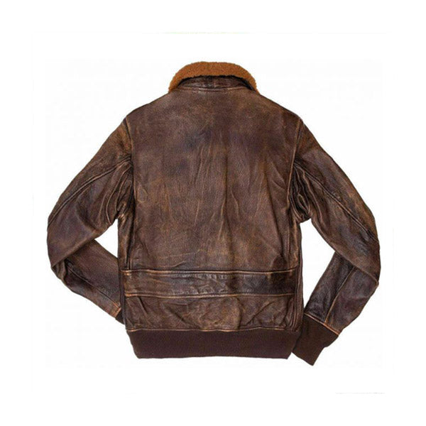 Mens Aviator G-1 Flight Distressed Brown Leather Bomber Jacket
