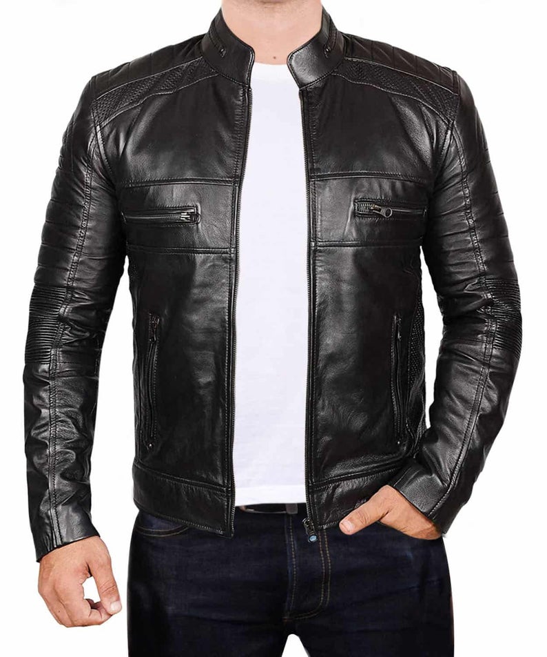 Men Stylish Slim Fit Real Genuine Leather Best Biker Motorcycle Black Jacket