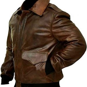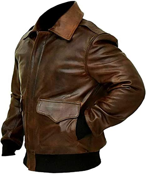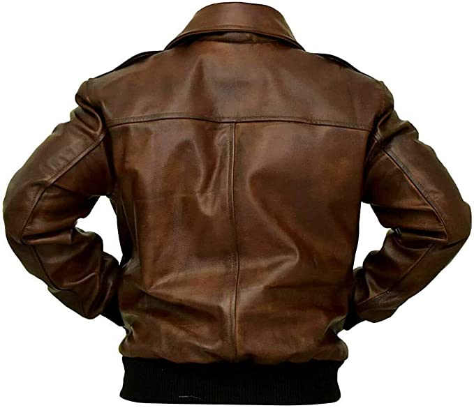 Men’s A-2 Aviator Air Force Flight Bomber Distressed Brown Genuine Leather Jacket