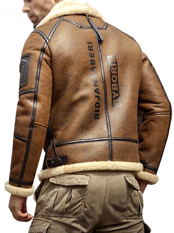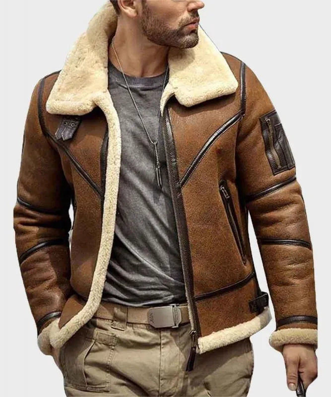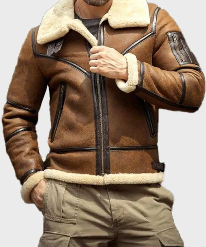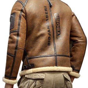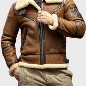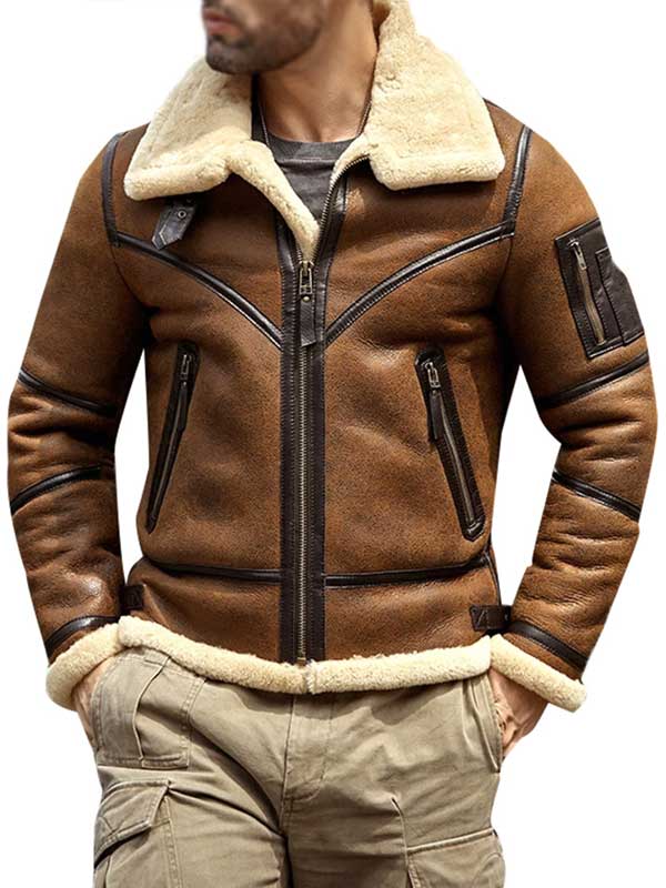Men’s Brown B3 Sheepskin Leather Aviator Jacket treats you ideally with a chic look and charming temperament. The embroidered leather stripes on the vest are more suitable for both occasional parties and casual days. The stunning brown color enhances its design