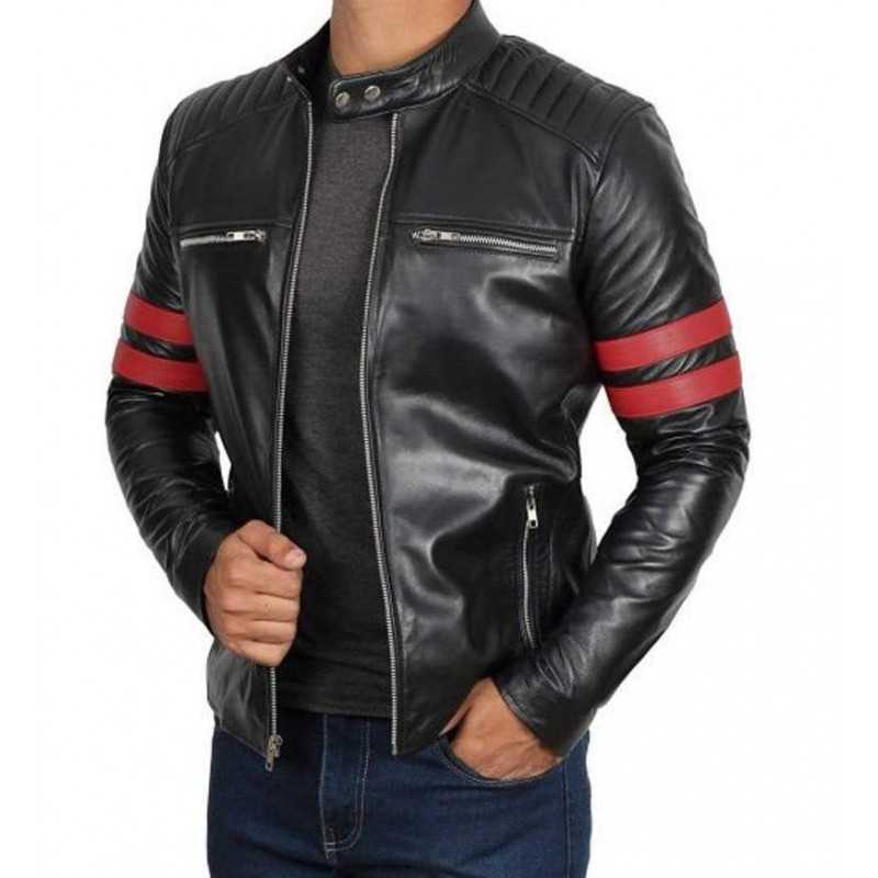 Tags: biker jackets, black leather, cafe racer leather jackets, Mens Black Quilted Red Stripe Cafe Racer Leather Motorcycle Jacket, motorcyle leather jackets, Slim Fit Jacket, Stylish Jacket