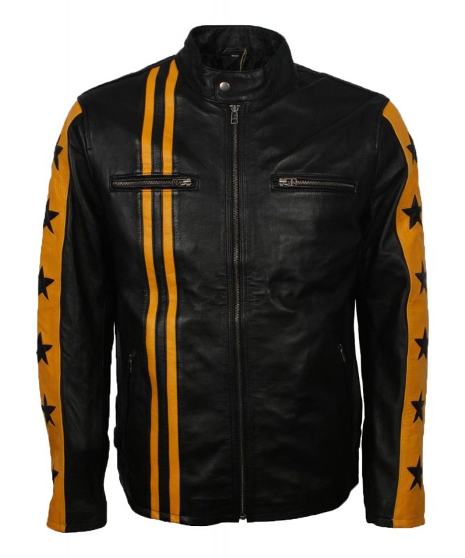 Be the first to review “Mens Cafe Racer Yellow Star Leather Jacket” Cancel reply