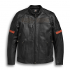 Men’s Victory Sweep Leather Jacket – Black. Made from midweight buffalo leather with a polyester mesh lining. Comfortable and protection features like vented action back, pre-curved sleeves, two-way zipper front, zipper cuffs, and body armor pockets. Body armor pockets at elbows, shoulders, and back. Snap-tab mandarin collar. Pockets include zipper hand-warmer pockets, one interior stash pocket, and one interior zipper pocket. Buffalo pull-up leather for a vintage look.