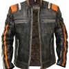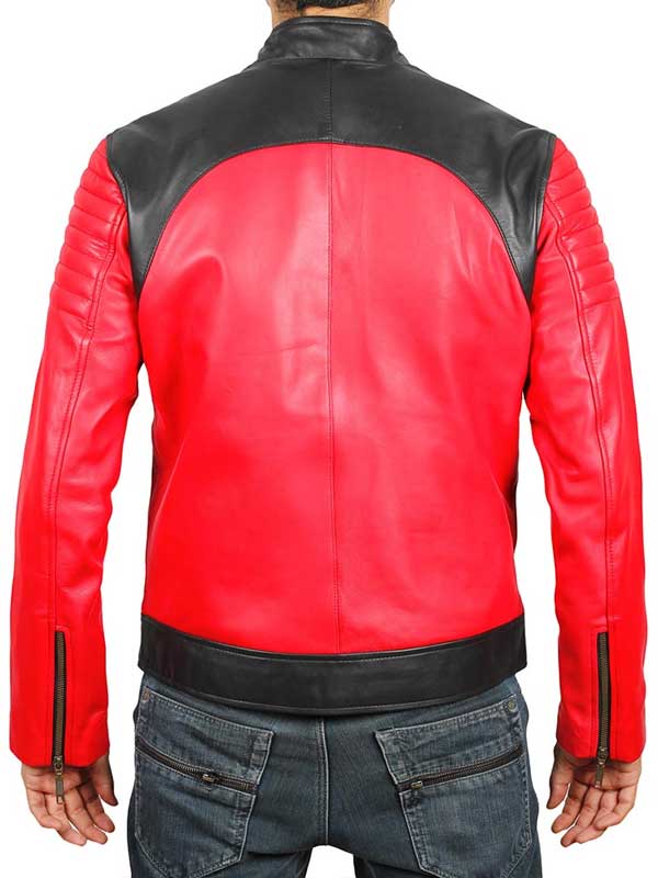Men’s Padded Red and Black Leather Biker Jacket
