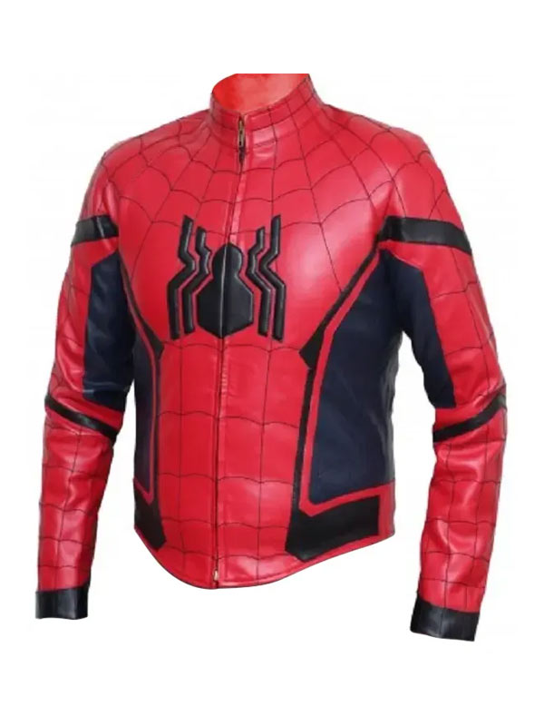 It is time to suit up as your favorite friendly neighborhood superhero with our Spiderman Homecoming Leather Jacket. This jacket draws its inspiration from the costume worn by Tom Holland in the second Spiderman movie in the MCU.