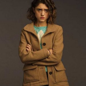 This gorgeous jacket is made up of wool fabric. Wool fabric is made by the hair of certain mammals. Most of the wool fabric came from sheep, goat, camel and certain kinds of rabbits also. Wool fabric is a good insulator. Stranger Things 3 Nancy Wheeler Jacket will keep you snug and tepid by trapping air between its fibers. It has viscose lining inside the jacket. Natalia Dyer Stranger Things 3 Brown Wool Coat has buttoned closure, wide lapel collar and open hem cuffs. Add this brown colored jacket into your cart.