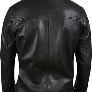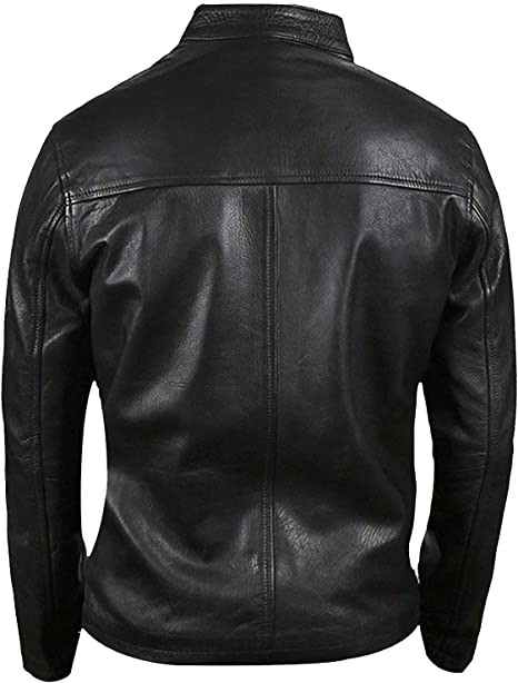 Cafe Racer Biker Vintage Black Leather Stripes Jacket