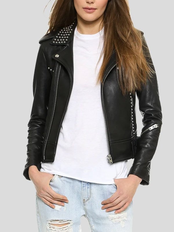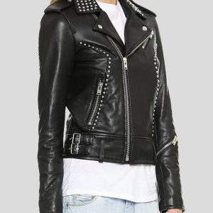 Leather jackets are not just outfits; they define your personality. This Womens Biker Studded Leather Jacket is the perfect choice for women with a bold personality. Available in Black color, this item is finely stitched with premium quality leather.Â