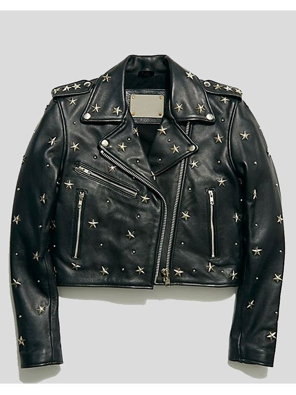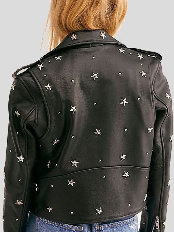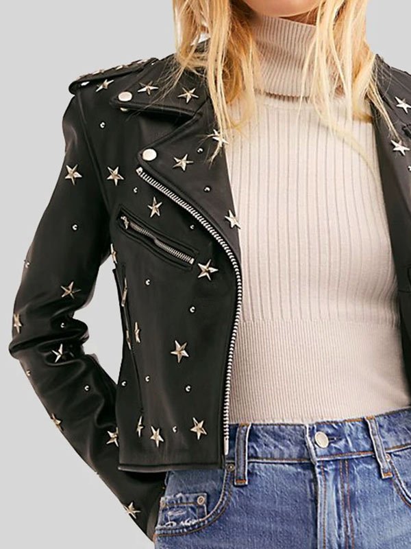 Womens Cropped Studded Leather Jacket