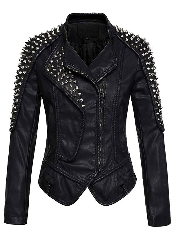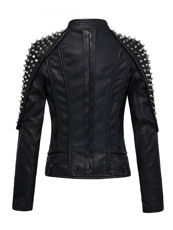Women’s Black Punk Stylish Studded Leather Moto Jacket