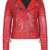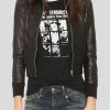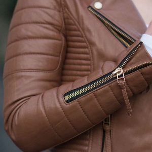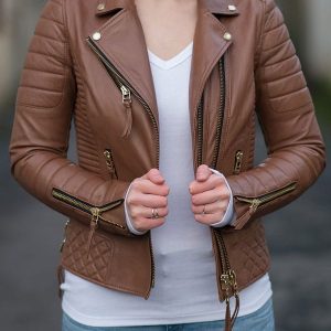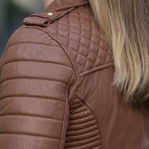 Womens Boda Style Quilted Leather Biker Jacket Brown