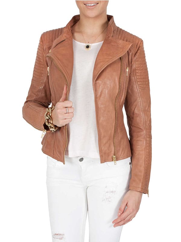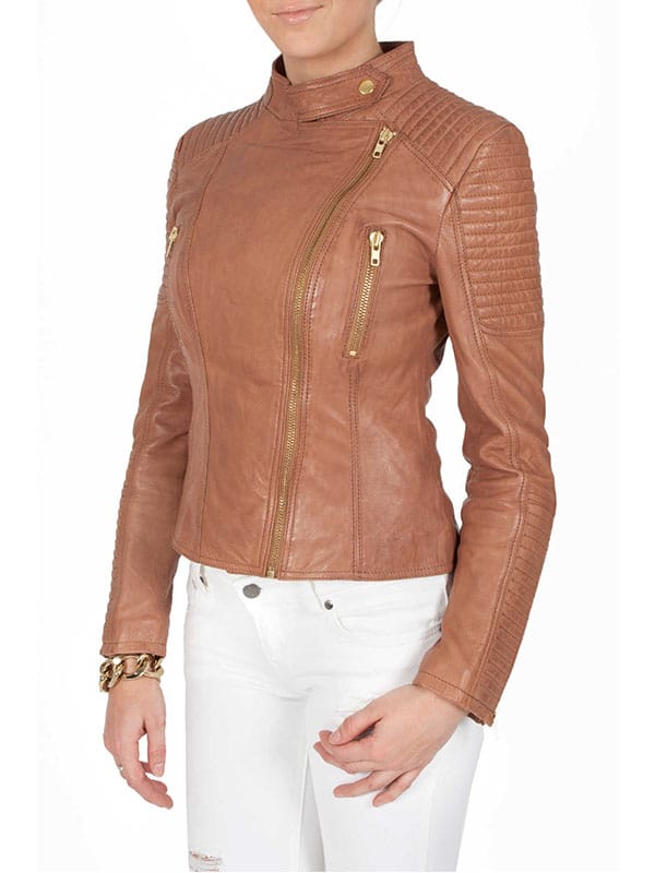 Tags: Slim Fit Jacket, Stylish Jacket, women Biker jacket, women brown leather jackets, women tan brown jacket